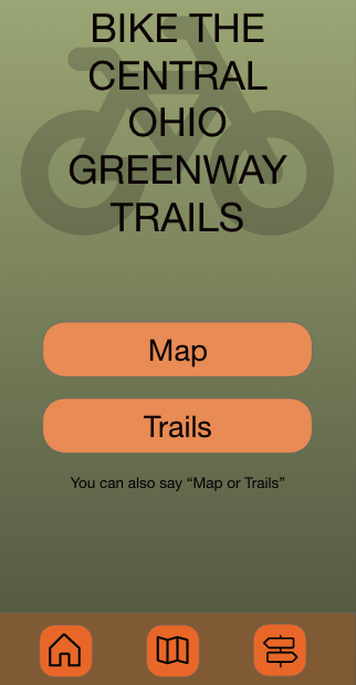 Bike the Central Ohio Greenway Trails Mobile App Wireframe
